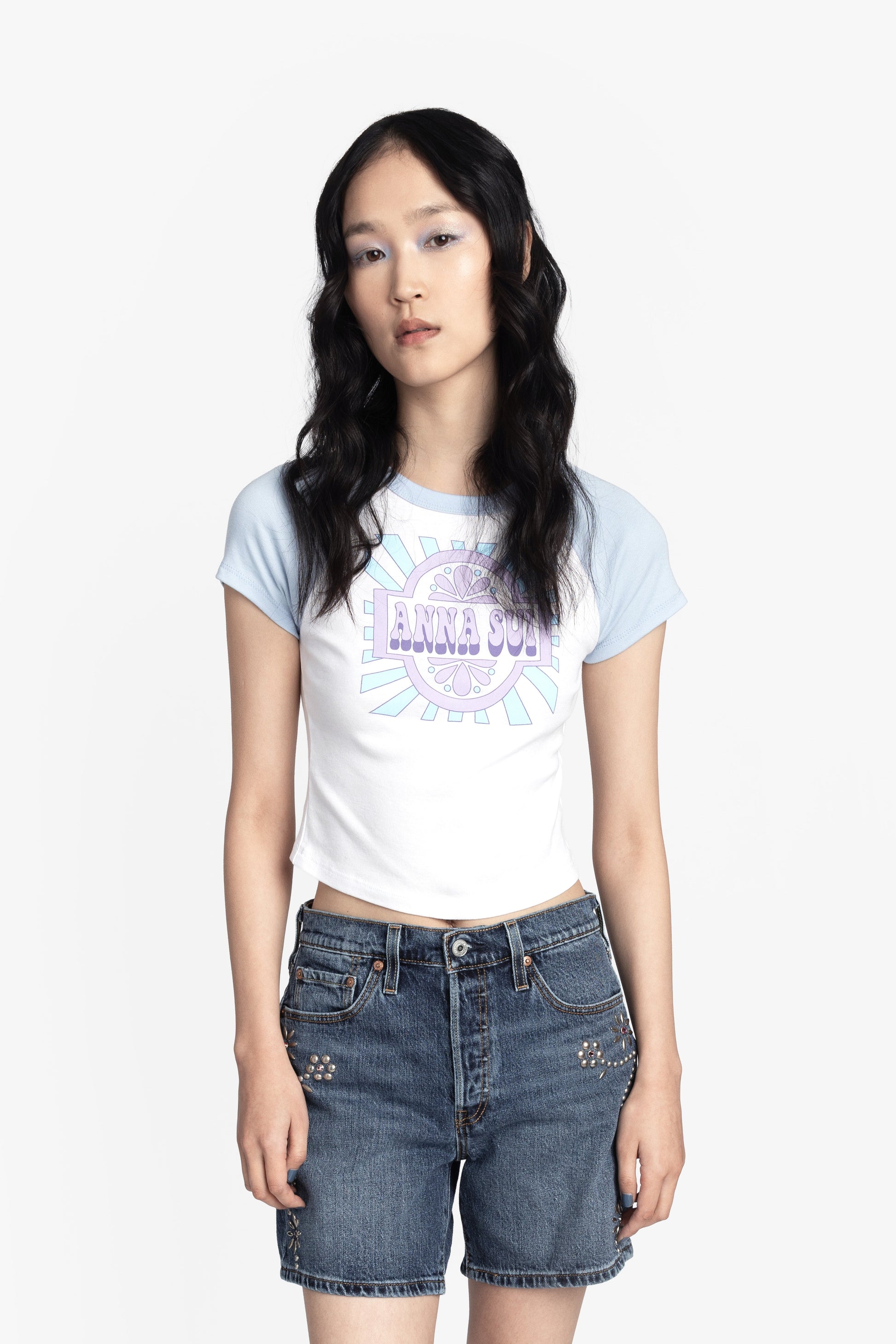 Make a statement in the Anna Sui Spring ’26 Invitation Baby Tee. Crafted from a soft cotton-polyester blend, this fitted baby tee features the Spring 2026 invitation graphic with exclusive artwork by Julie Pollak. Designed in a classic cropped silhouette, it blends everyday comfort with bold, art-driven style. An easy standout piece that pairs effortlessly with denim, skirts, or layered looks for a cool, modern finish.