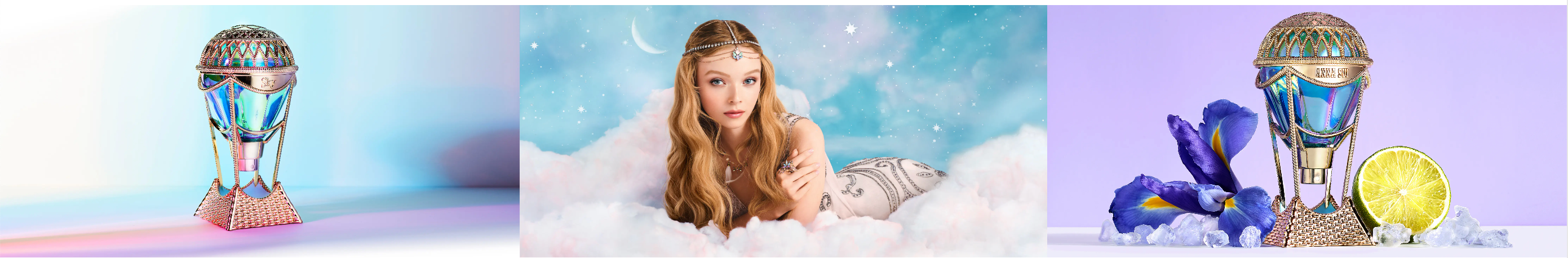 COSMIC SKY celebrates the magic inside everyone… the power to confidently dream until it becomes reality. Glass bottle is iridescent with champagne silver metal components.
