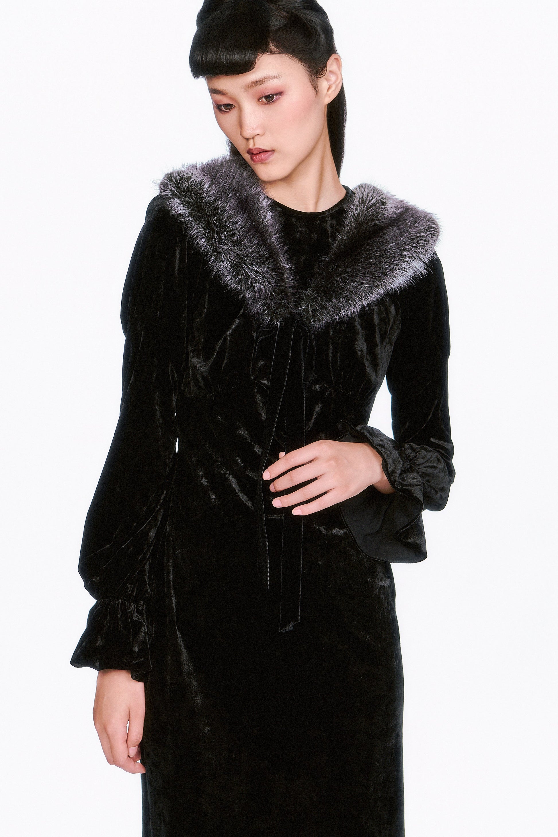 Add a touch of vintage glam to any outfit with the Faux Silver Fox Collar. Soft and elegant, this statement piece is designed to tie around the neck for a comfortable, custom fit. Whether layered over a coat, sweater, or dress, this accessory can elevate any look!