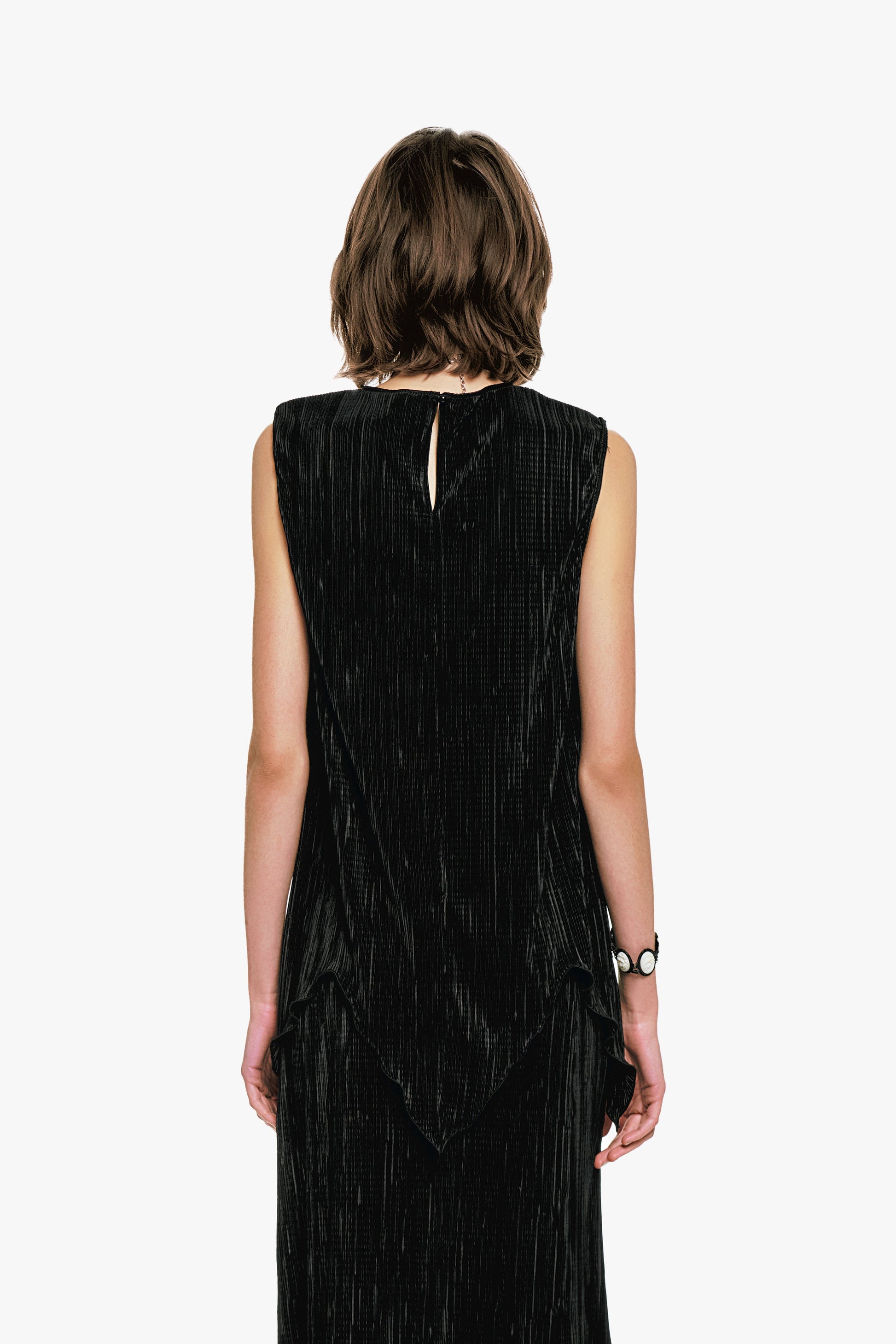 The Anna Sui Plissé Sleeveless Top combines delicate pleats with a modern, asymmetrical hem for a striking, feminine silhouette. Perfect for pairing with skirts, trousers, or layered under jackets, this top embodies Anna Sui’s signature mix of romance and contemporary style.