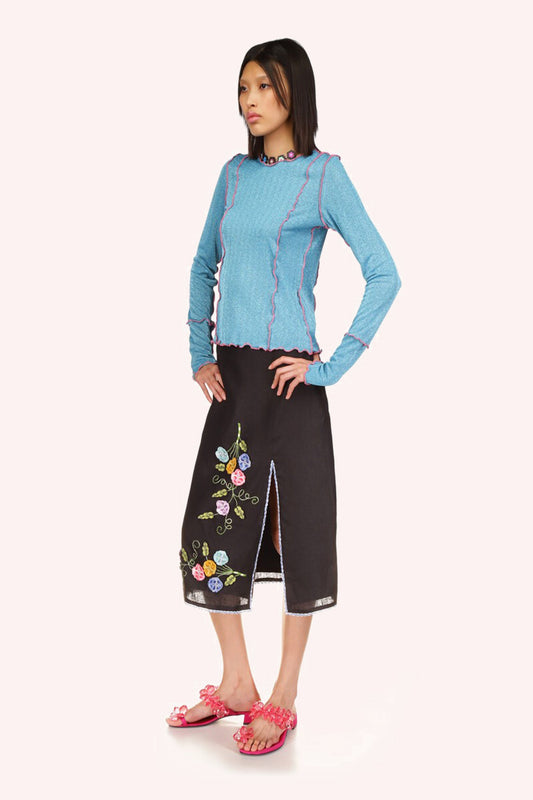 3-D Pansy Embroidered on Linen Skirt