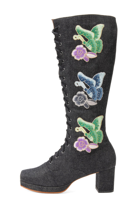 John Fluevog x Anna Sui Butterfly Boots - Black Denim