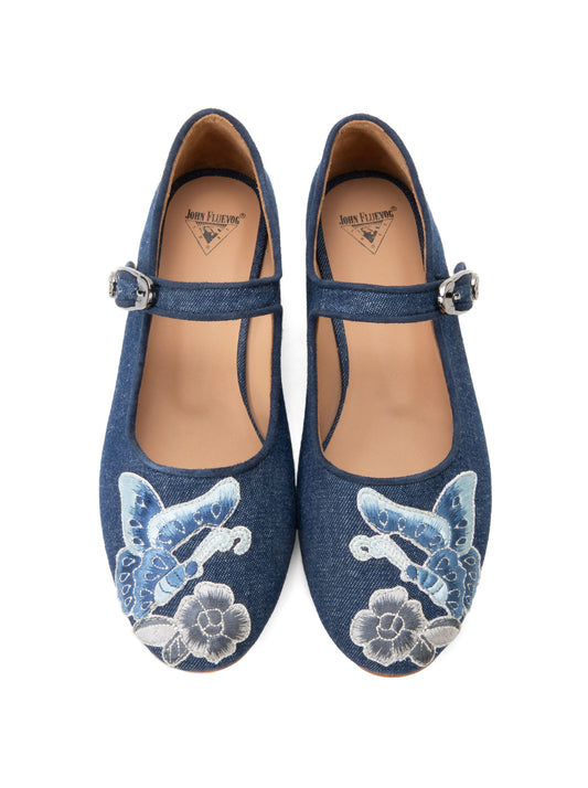 John Fluevog x Anna Sui Butterfly Mary Janes - Denim Blue