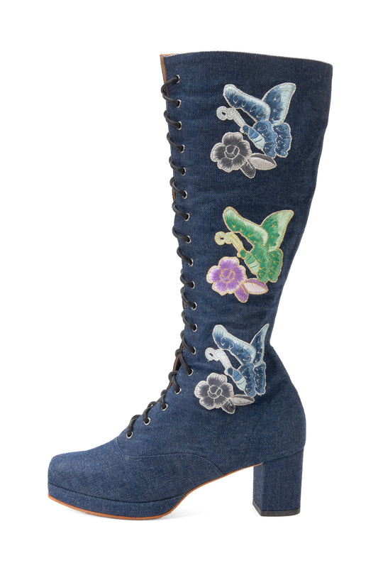 John Fluevog x Anna Sui Butterfly Boots - Denim Blue