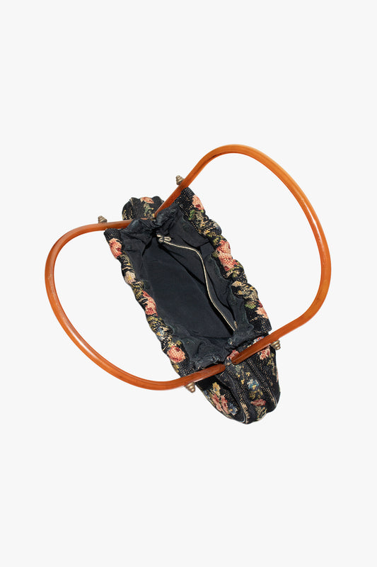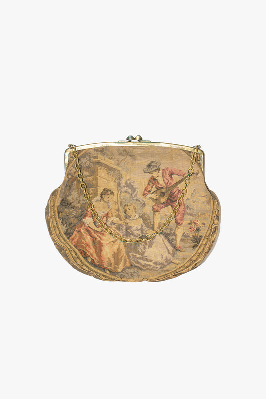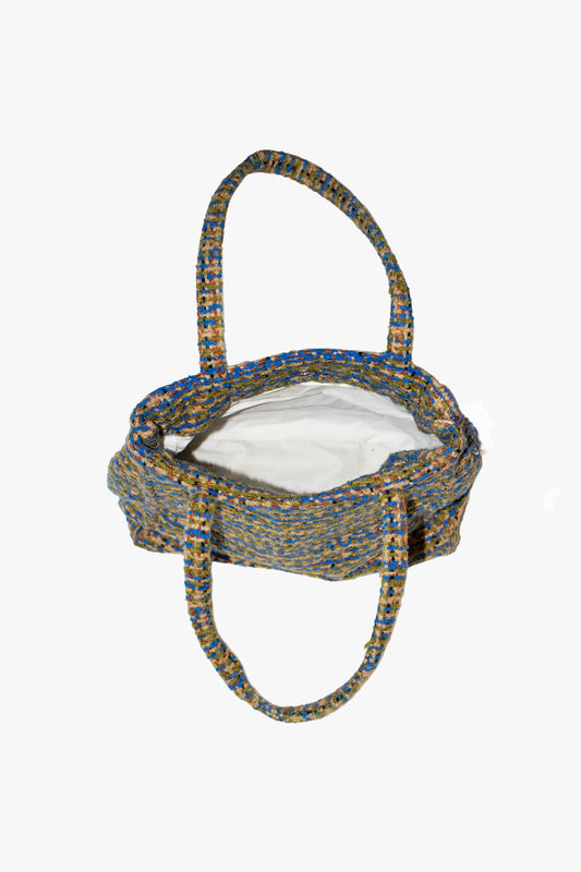 Vintage Mini Tweed Tote Bag-Green/Blue