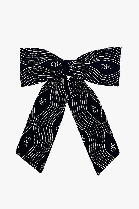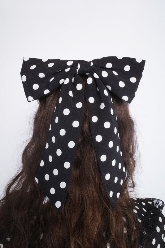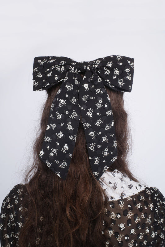 Satin Dot Flower Scrunchie- Black