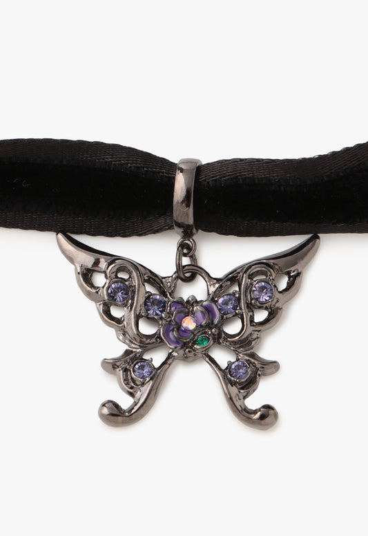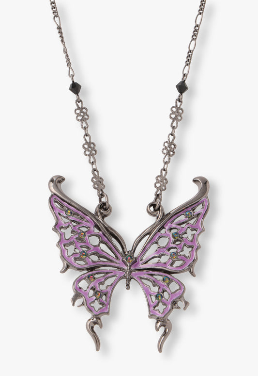 Bejeweled Butterfly Princess Necklace - Violet Gunmetal