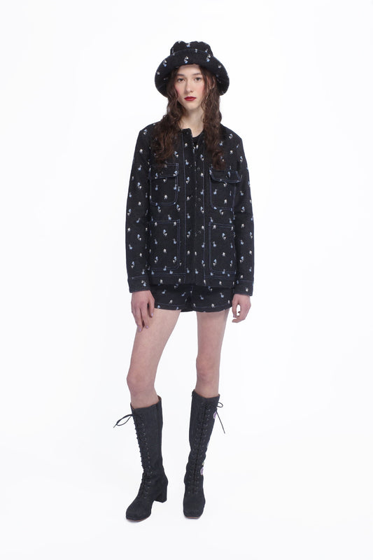 John Fluevog x Anna Sui Butterfly Boots - Black Denim