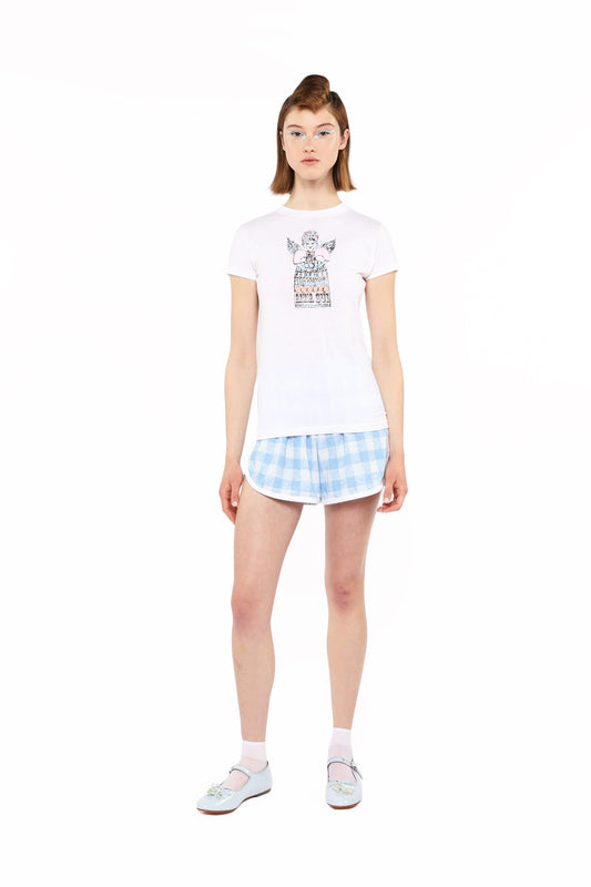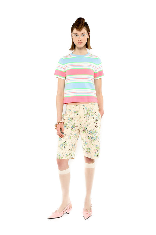 Fluorescent Stripe Short Sleeve Knit Top-Baby Blue