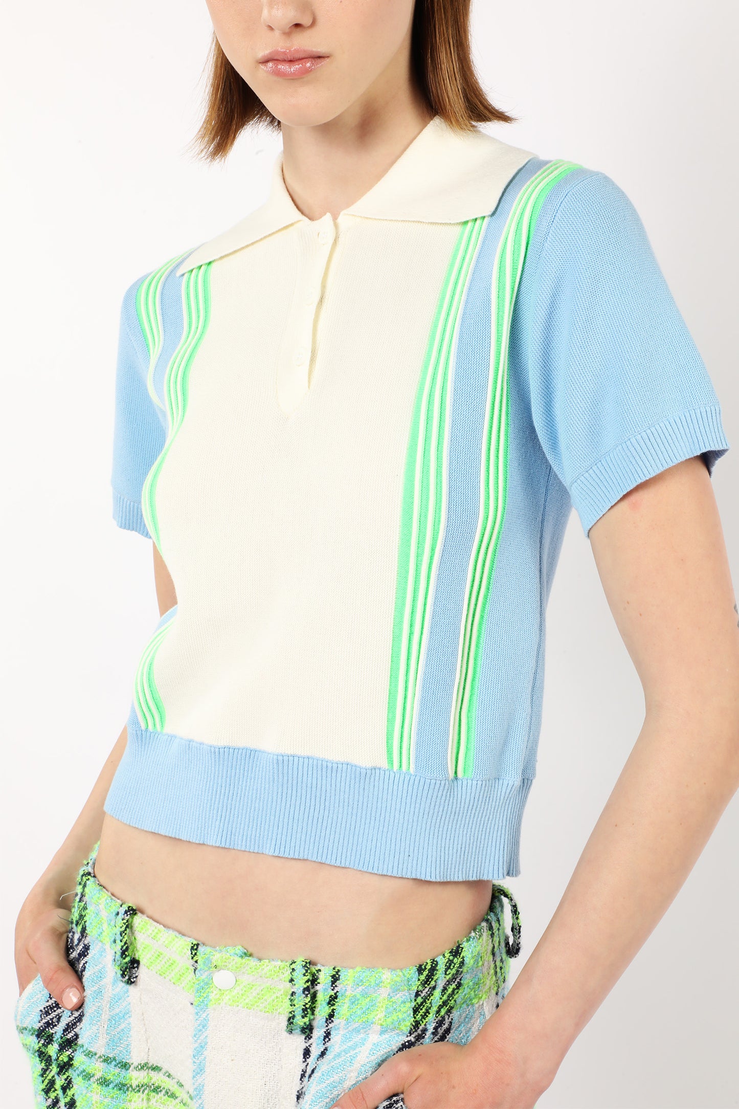 Amalfi Polo Knit Short Sleeve Top-Baby Blue