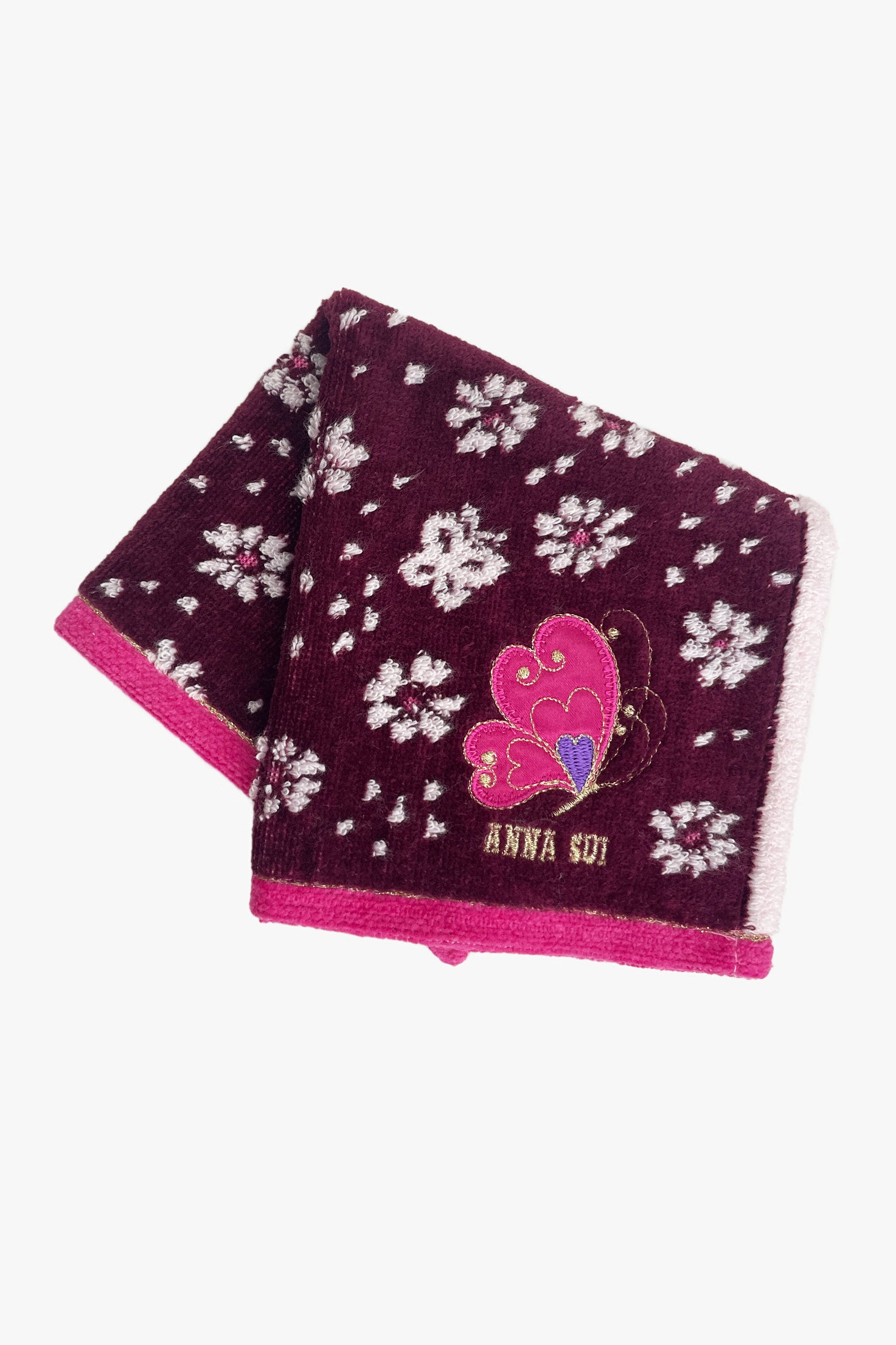 This washcloth features the classic Anna Sui butterfly motif with intricate heart designs and the embroidered Anna Sui logo. Floral accents complete the look. Crafted from soft, absorbent material, it’s perfect for everyday use while adding a splash of fun to your home decor.