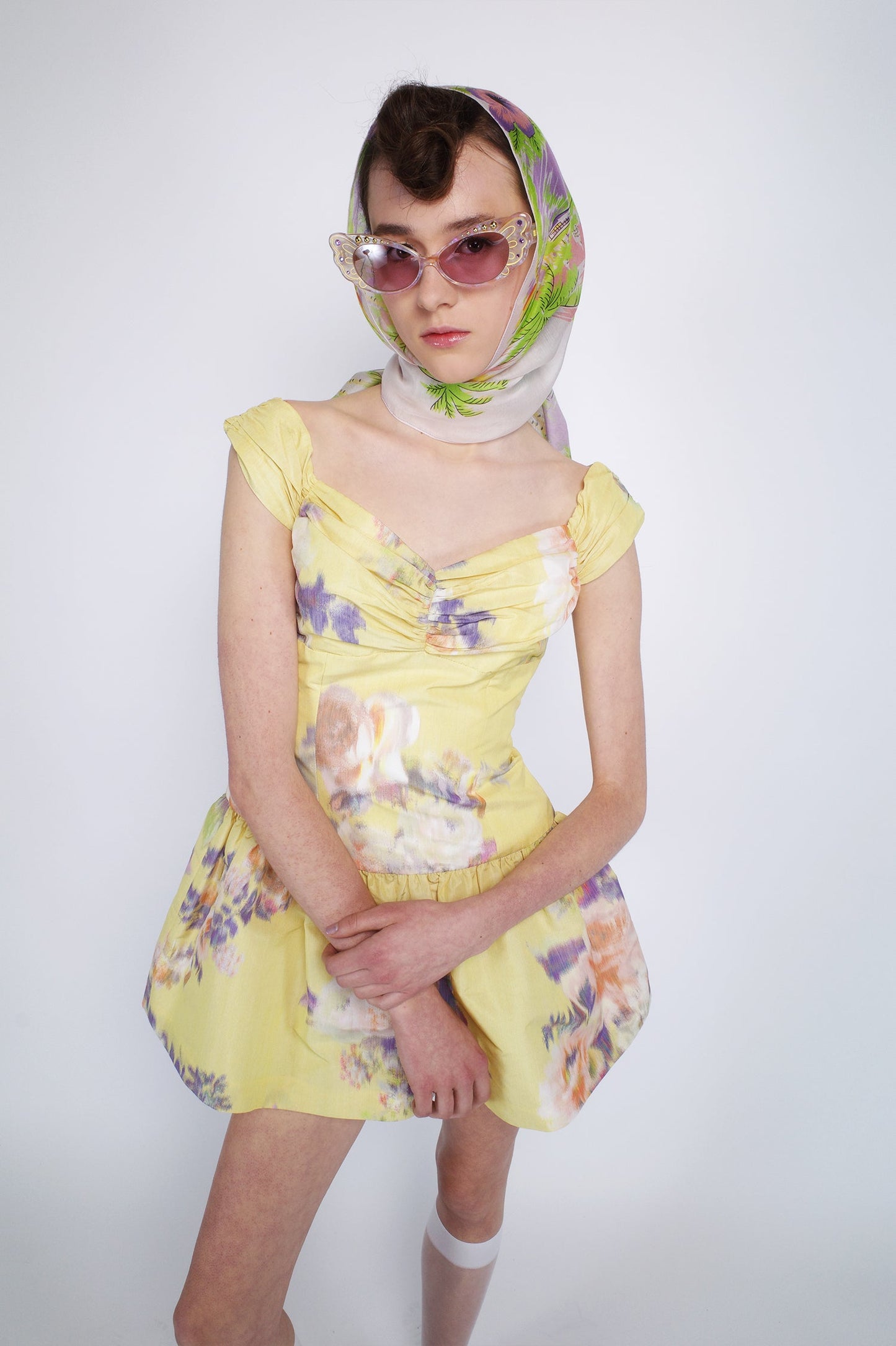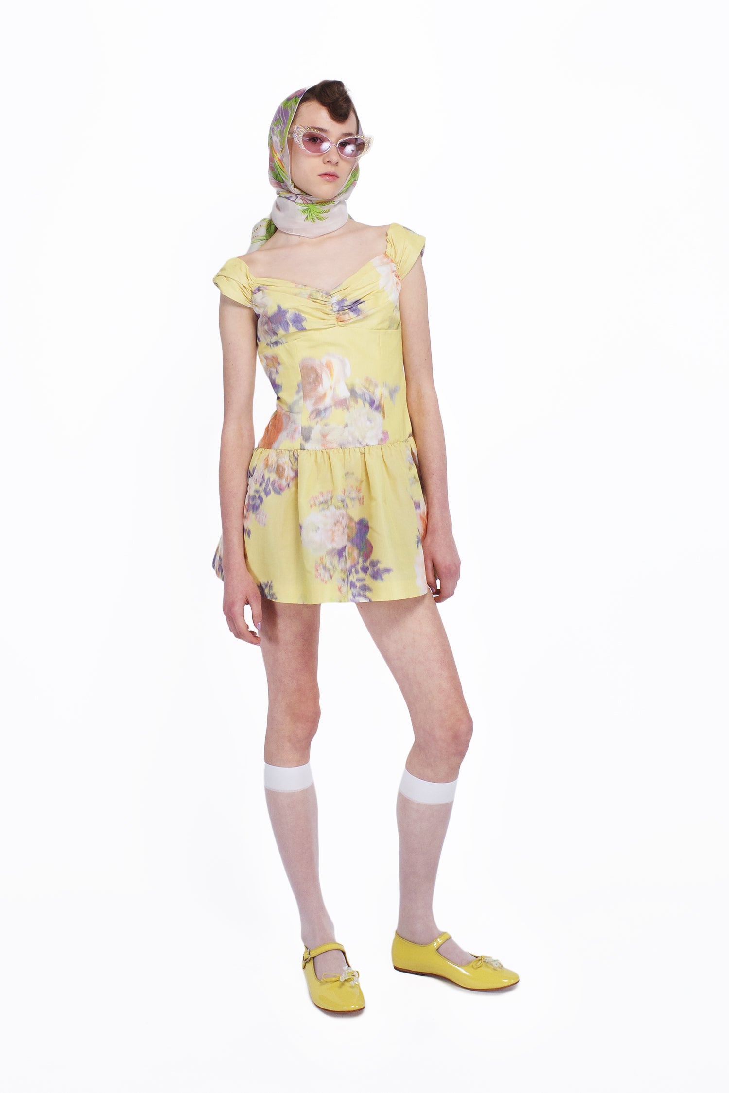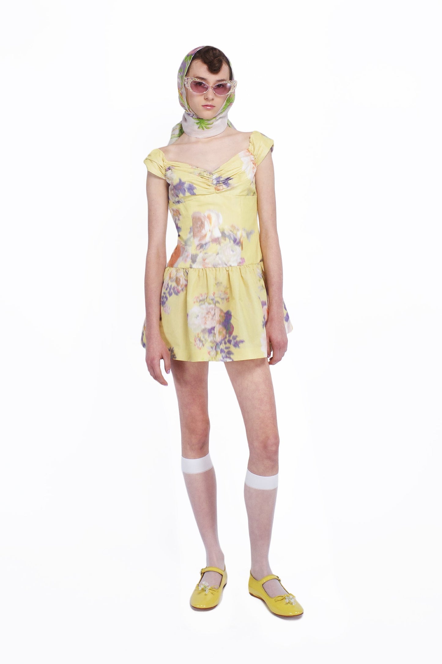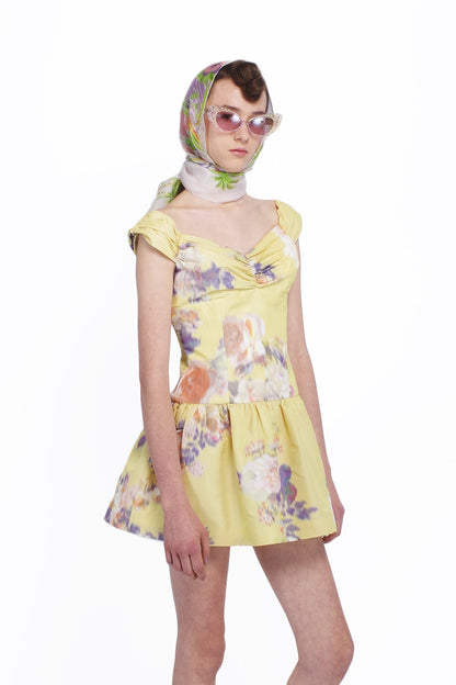 The Cabbage Rose Taffeta Sweetheart Dress brings romance to life with its soft cabbage rose florals and flattering sweetheart neckline. The mini length adds a playful touch, making it a standout piece for any occasion. This dress is perfect for making a statement at any event.
