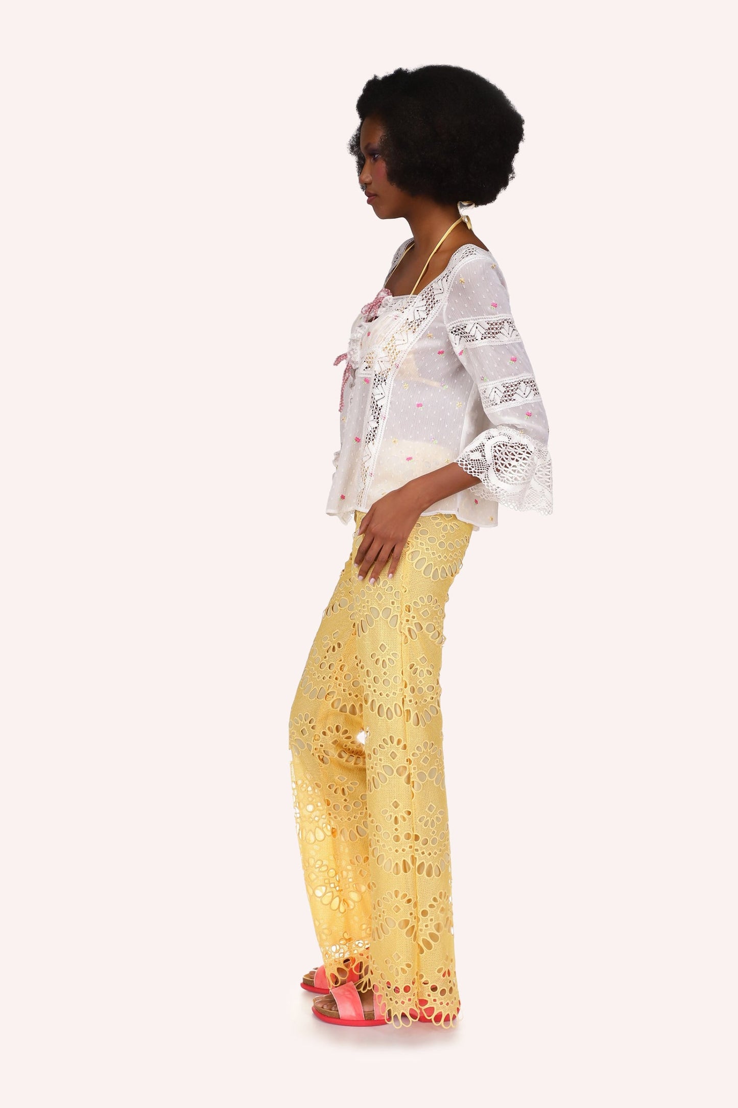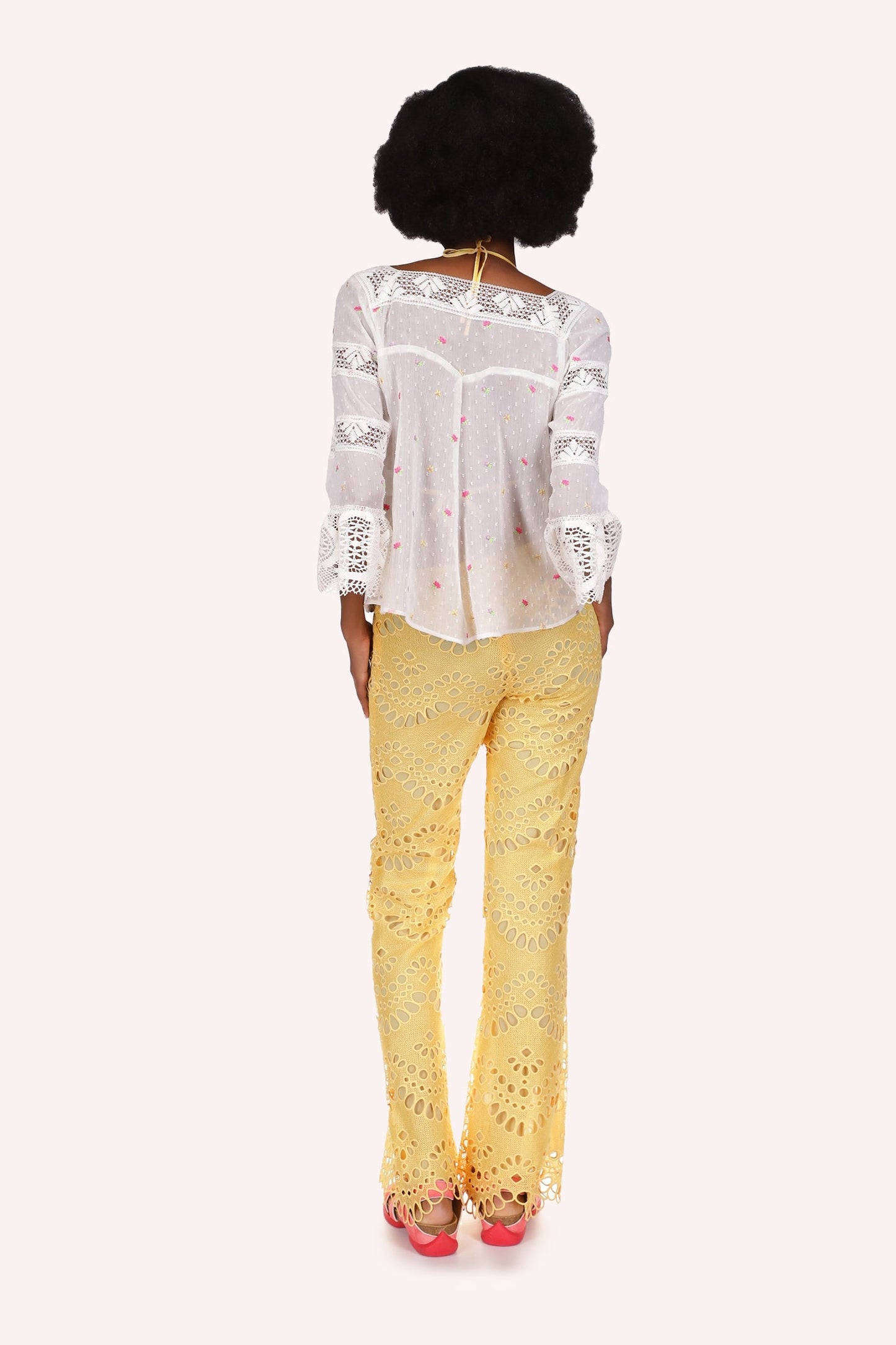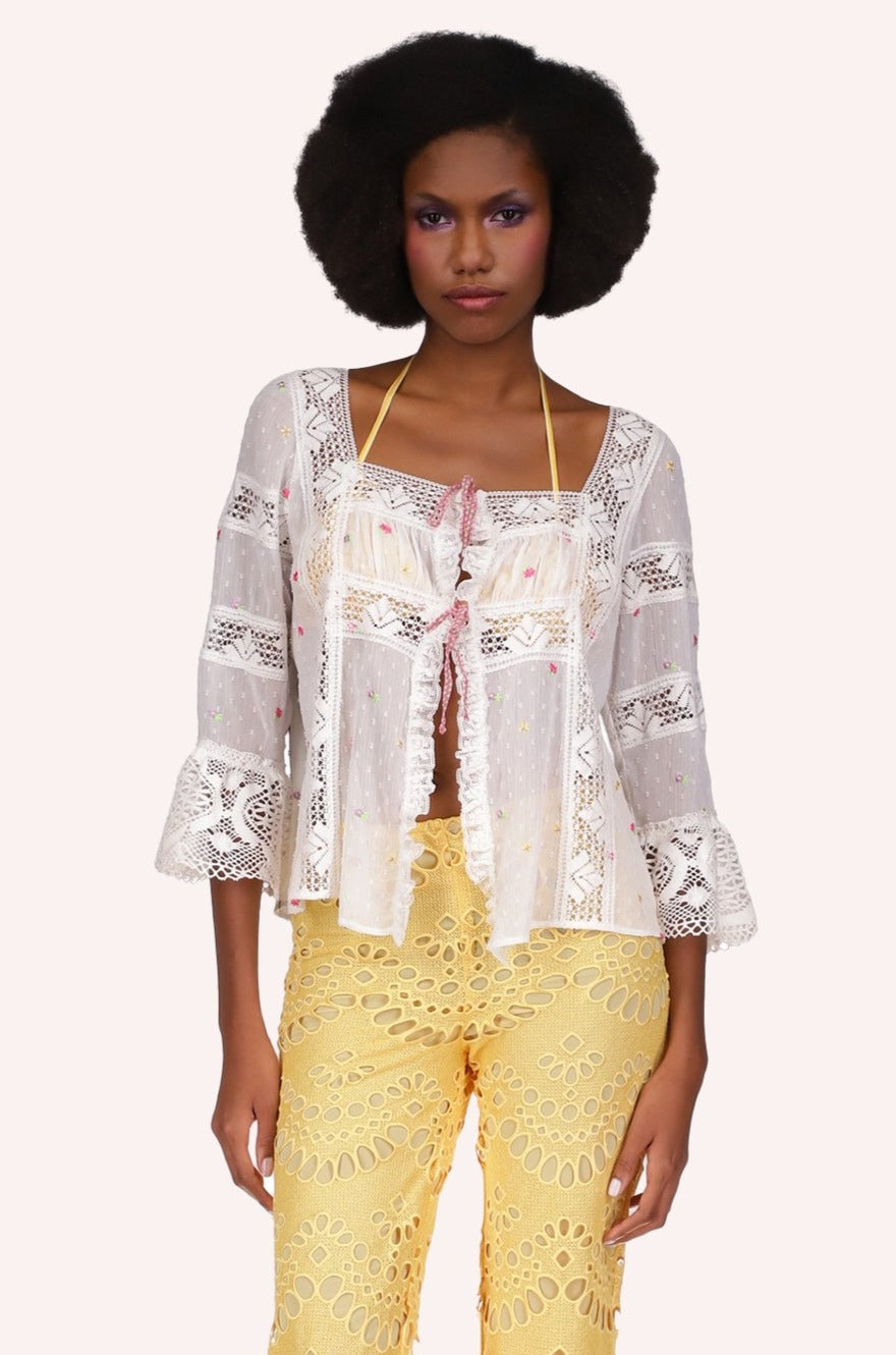 Cluny Lace Trimmed Floral Swiss Dot Blouse