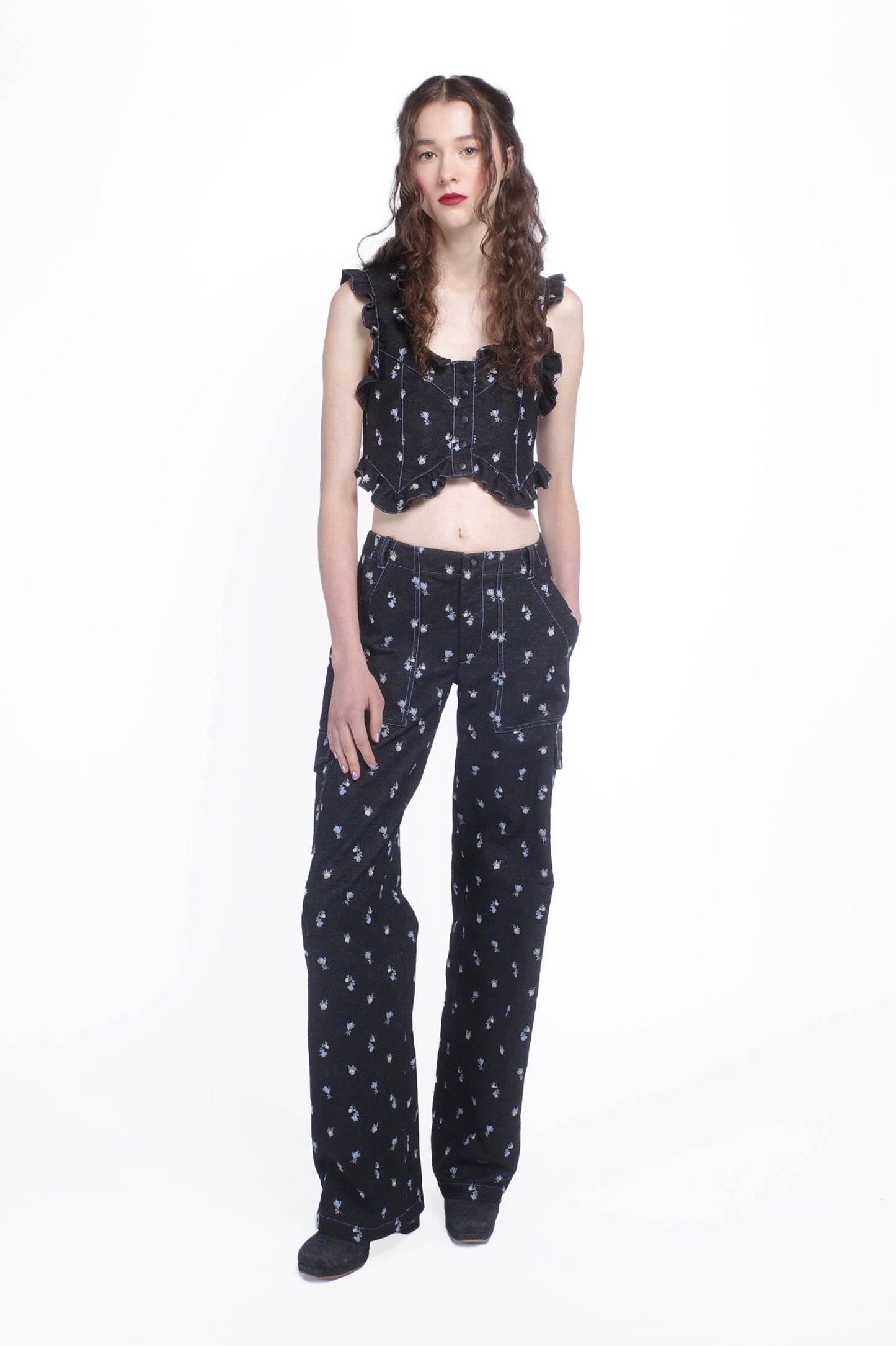 This piece features lovely ruffle details and beautiful embroidered roses. Perfect for layering, it adds a charming touch to any outfit while keeping you comfortable and stylish!