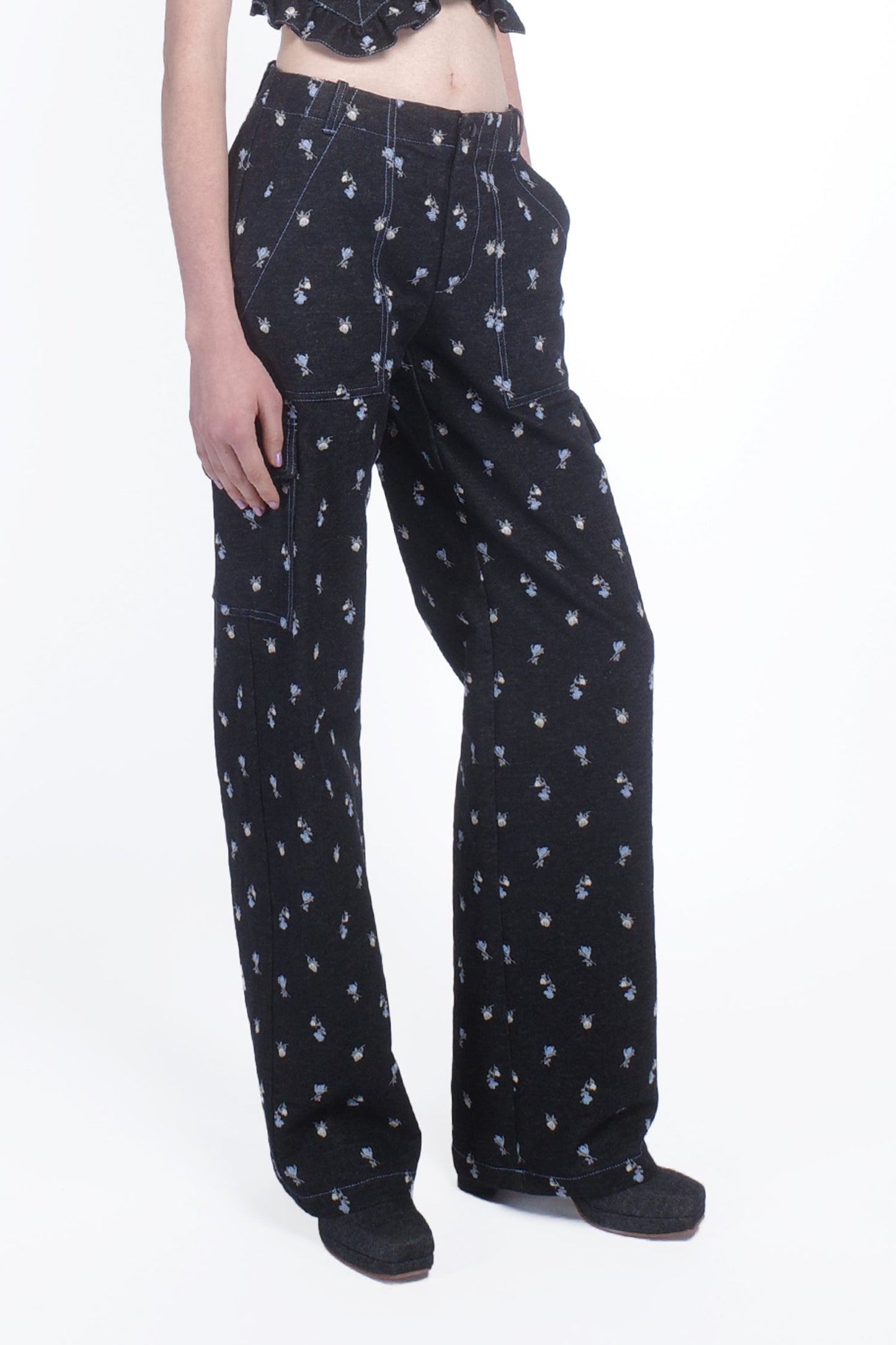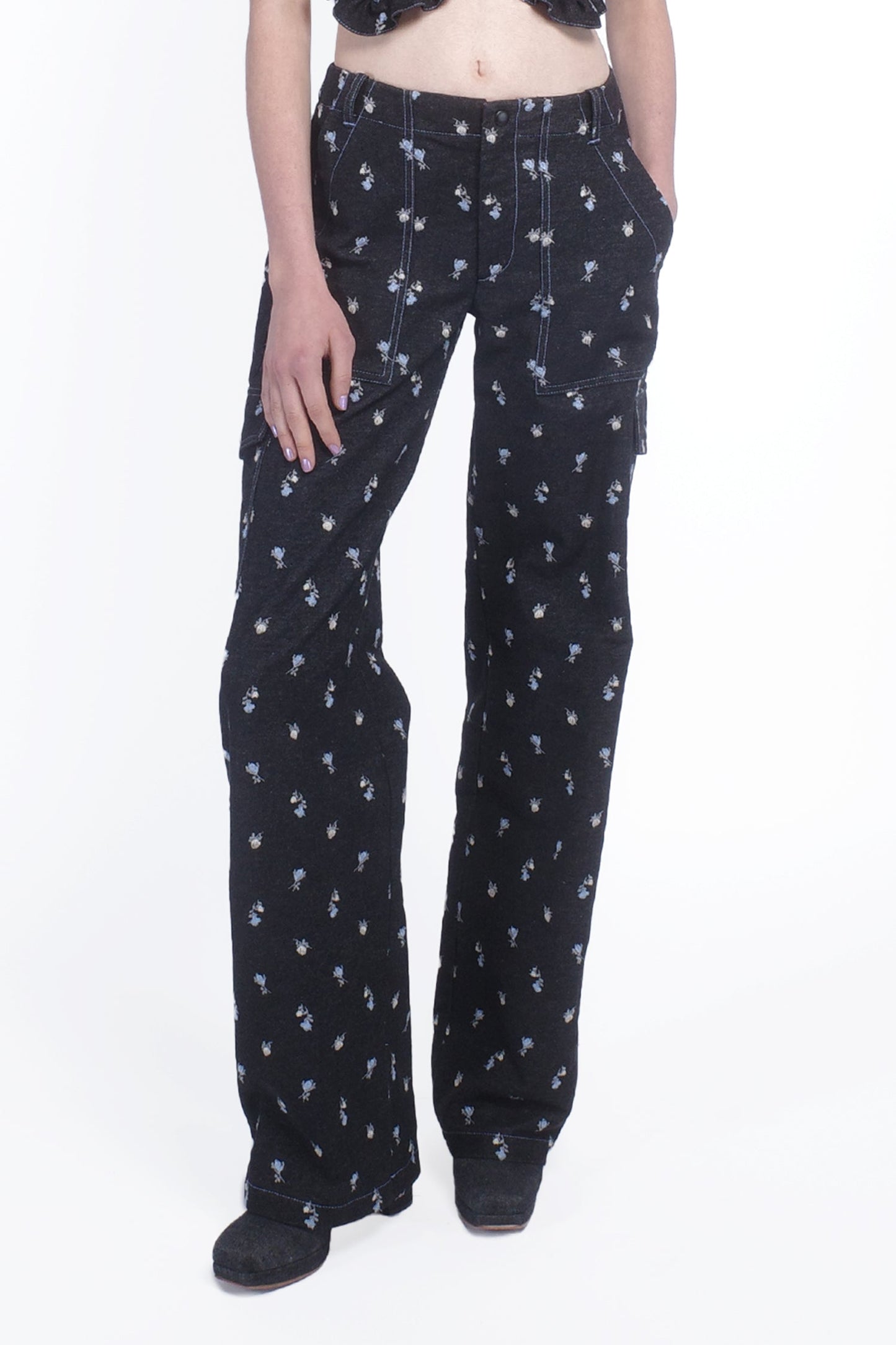 Elevate your everyday look with our Denim Embroidered Roses Cargo Pants. These stylish pants are crafted from high-quality 100% cotton, ensuring both comfort and durability. The classic cargo design is enhanced with intricate embroidered rose detailing, adding a touch of feminine elegance.