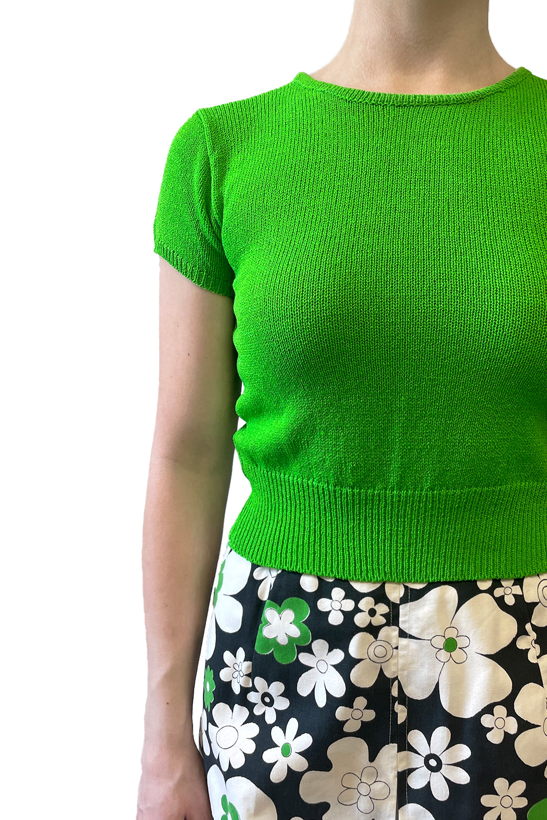 Cropped green short sleeve sweater top. Tagged as size L, fit runs small and would best fit S/M.