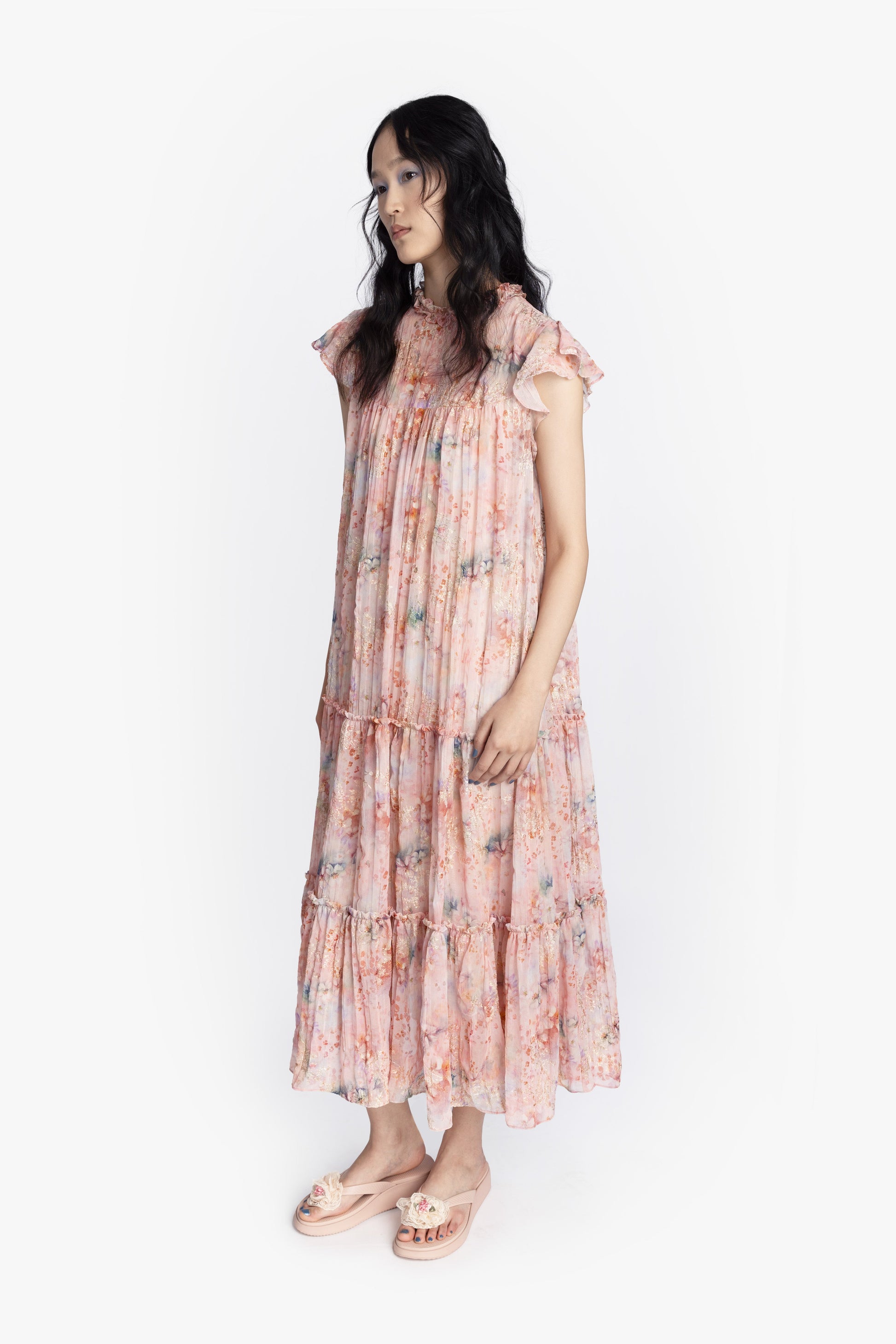 Float through the day in the Anna Sui Oasis Blooms Tiered Maxi Dress, the definition of effortless elegance. Designed with a light, airy silhouette, this flowy maxi drapes beautifully over the body, enhanced by a softly crinkled texture that moves with ease. Delicate metallic threading is woven throughout the fabric, subtly catching the light for a luminous, ethereal finish. Tiered layers add gentle volume and movement, making this dress perfect for warm-weather days, garden parties, or sunset evenings when you want to feel effortlessly enchanting.