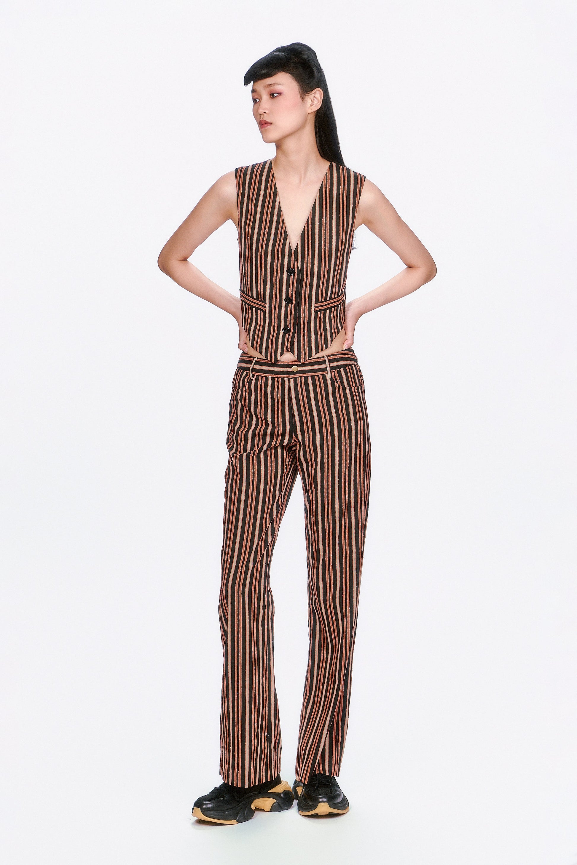 A modern take on a classic, the Pinstripe Vest features sharp tailoring and timeless stripes. Perfect for layering or wearing solo, it adds instant polish to any look.