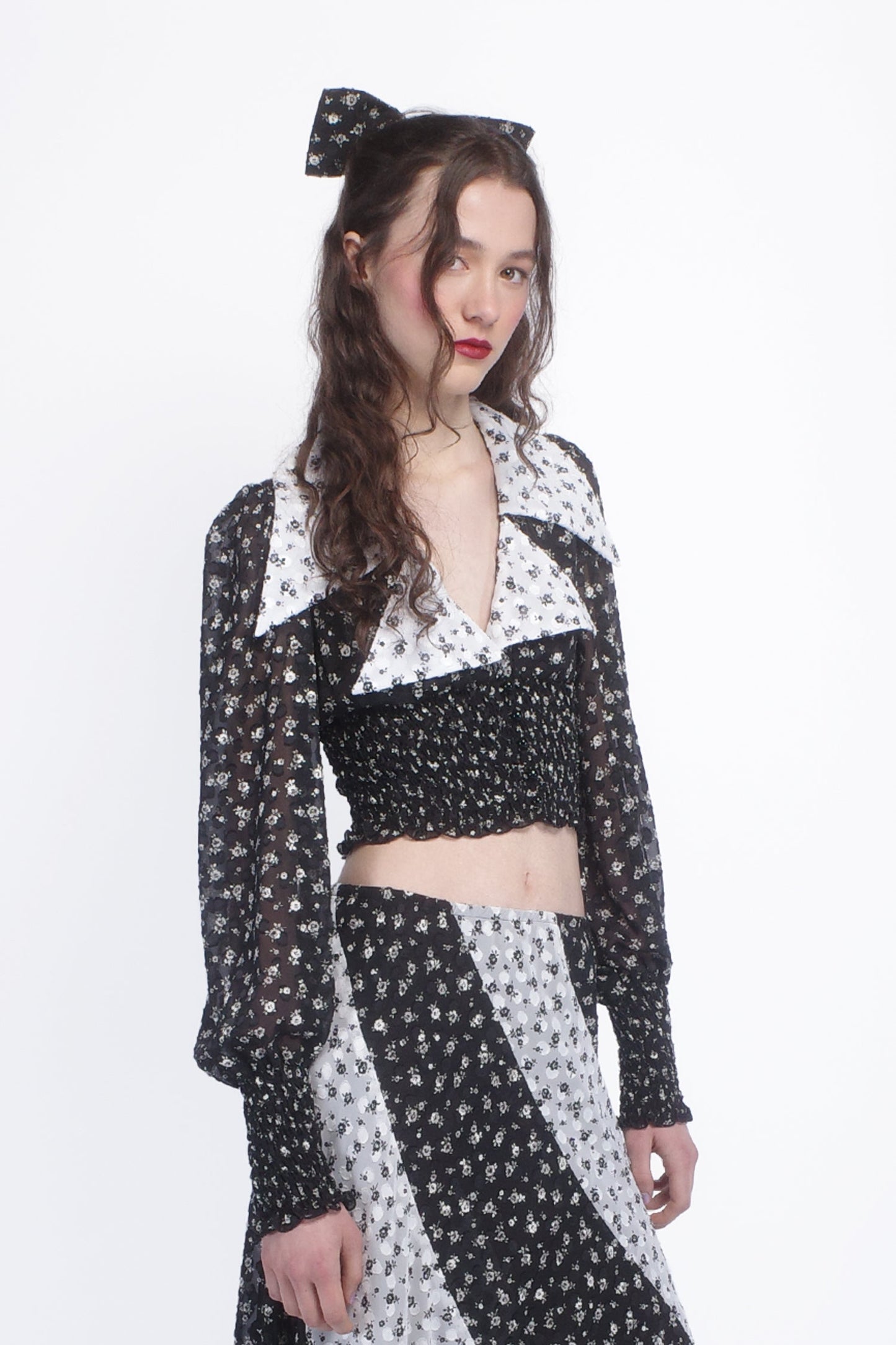 Elevate your wardrobe with our Ditsy Dot Chiffon Collared Smocked Top! Crafted from 100% polyester, this cute cropped design features playful smocking on the bodice and sleeves, adding a charming touch to any outfit. Perfect for layering or wearing on its own, this top combines comfort and style effortlessly.