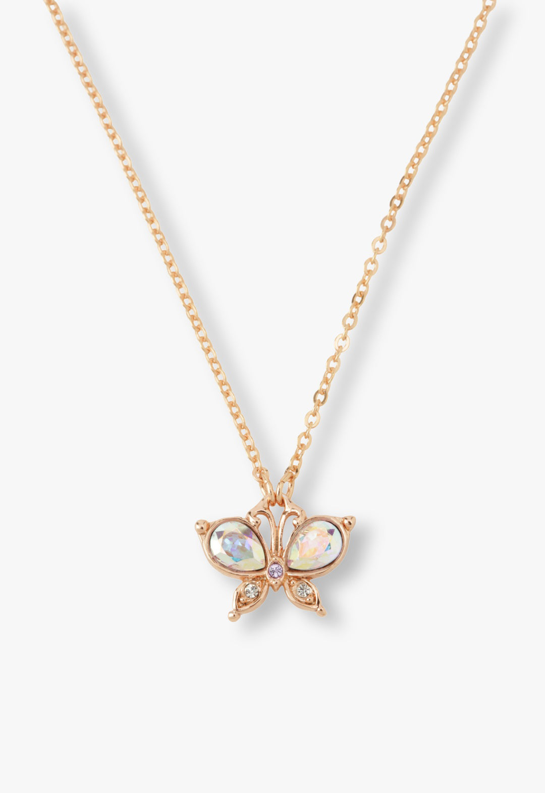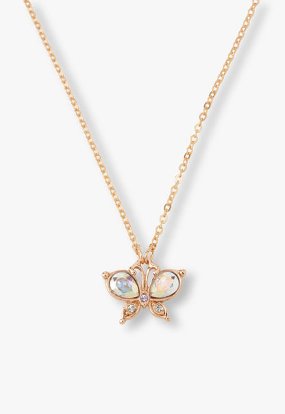 Shimmering in gracefulness , this silver butterfly necklace sparkles with delicate jewels—adding a touch of enchantment to any look.