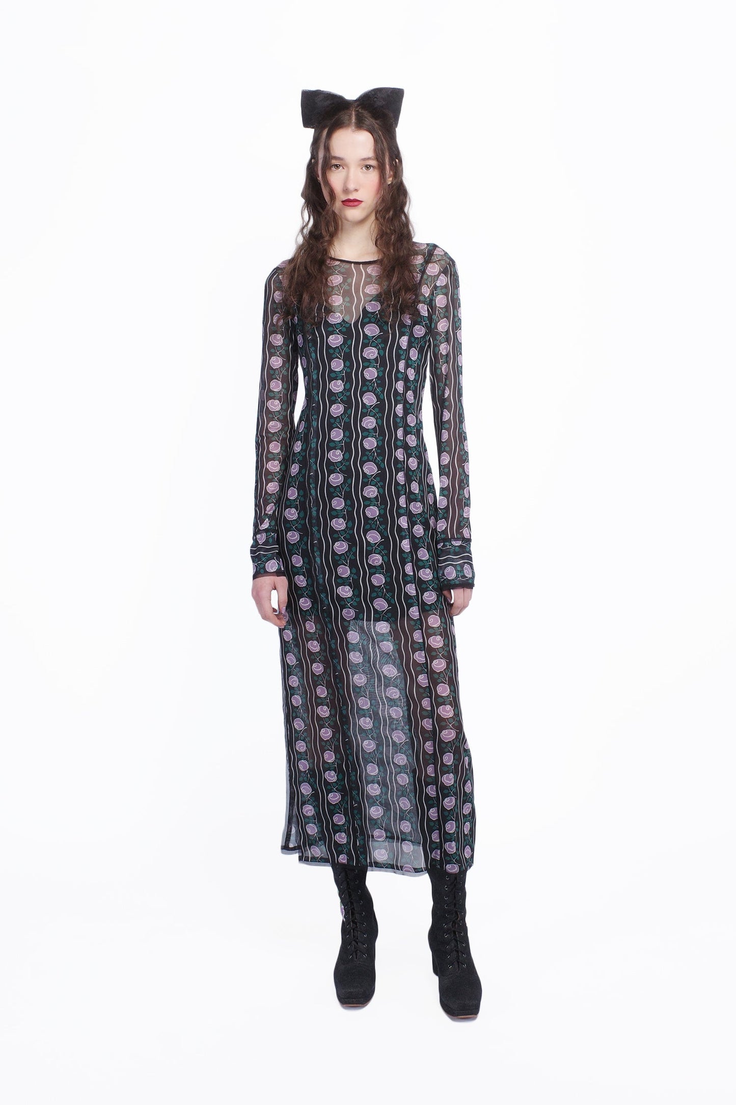 Make a statement with our Rosetti Mesh Maxi Dress. This long sleeve beauty combines elegance and comfort, featuring a flowing silhouette that's perfect for any occasion. Effortlessly stylish and versatile!