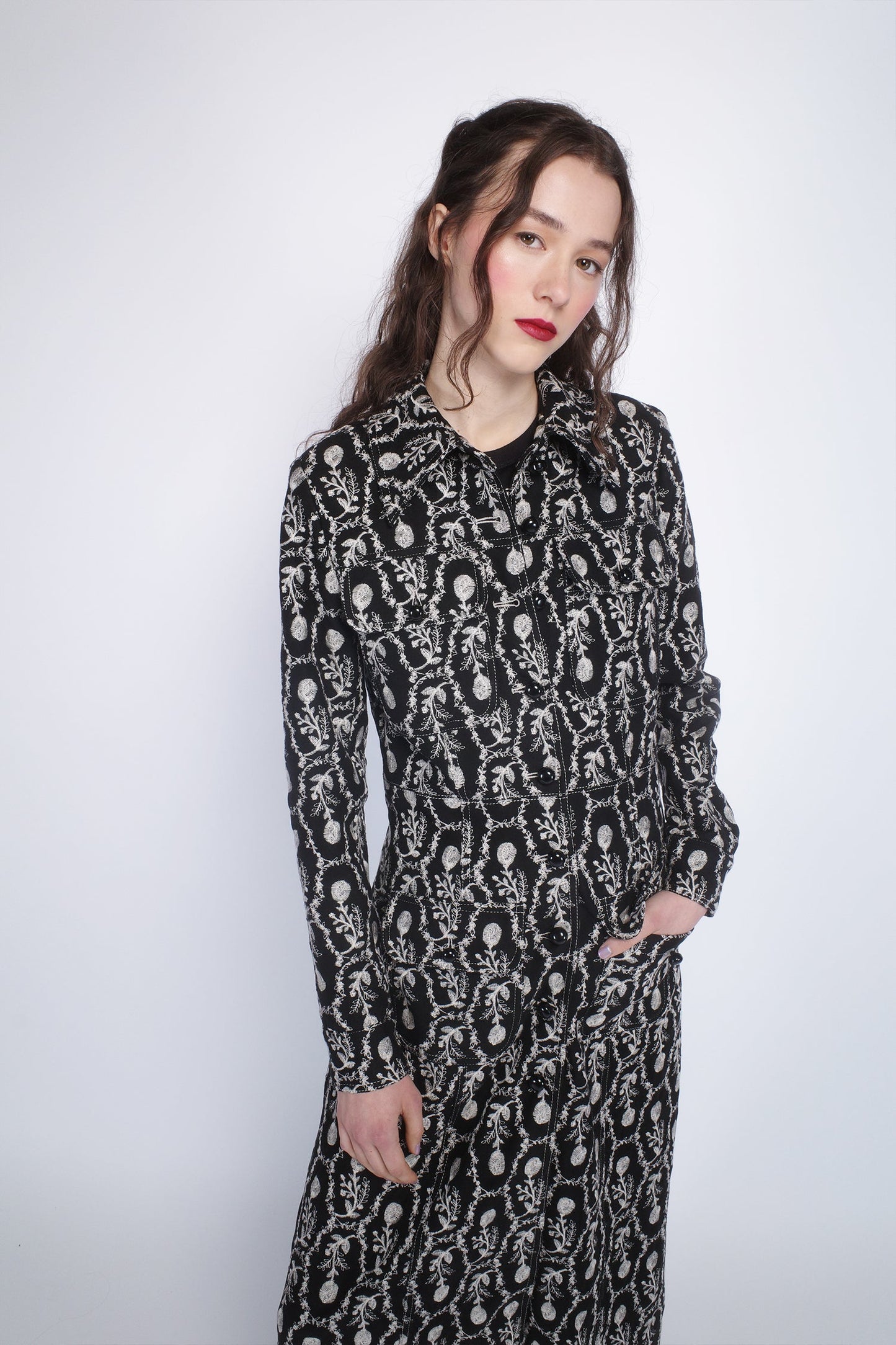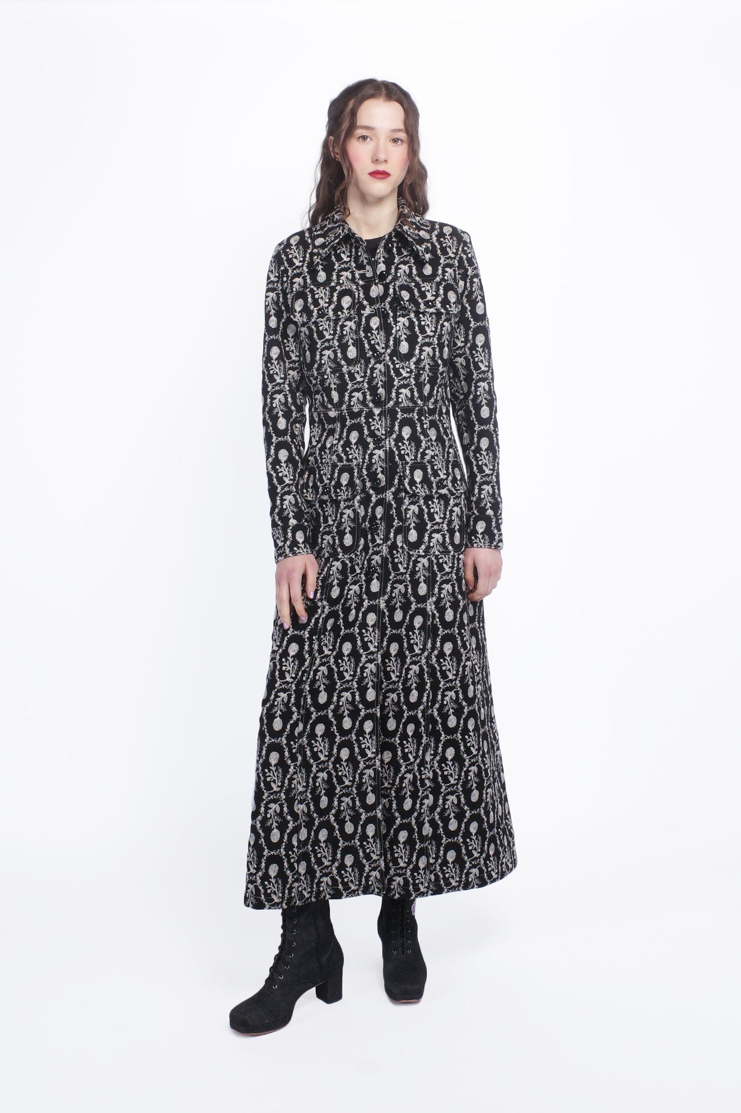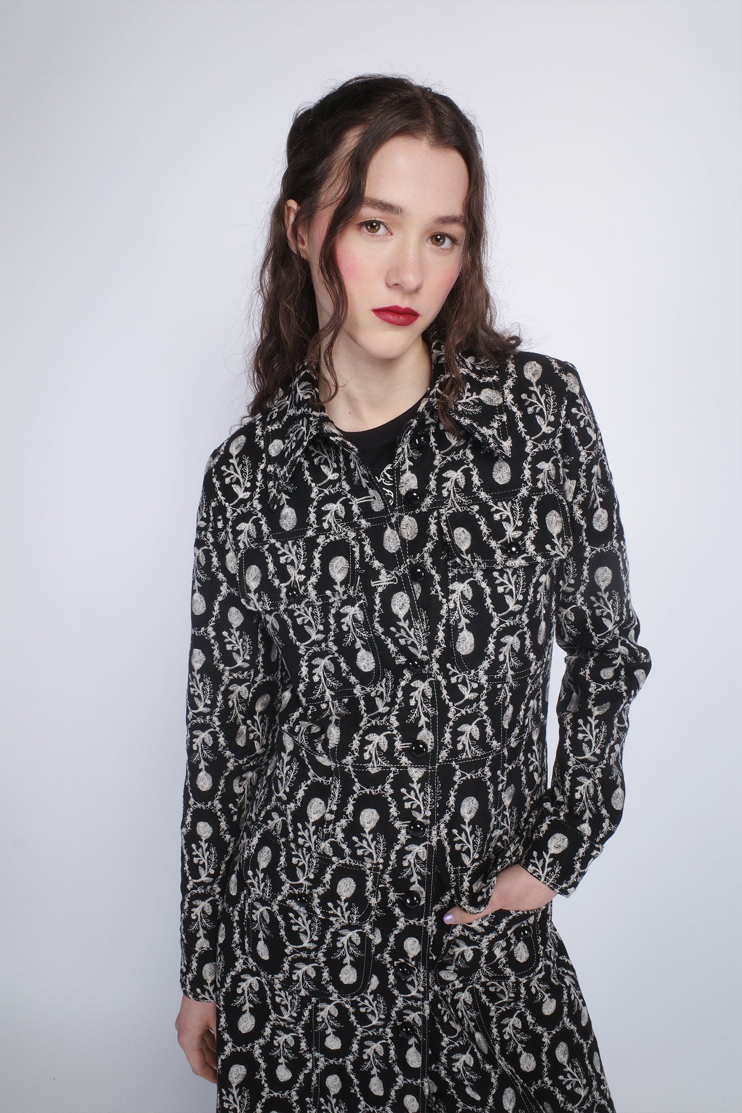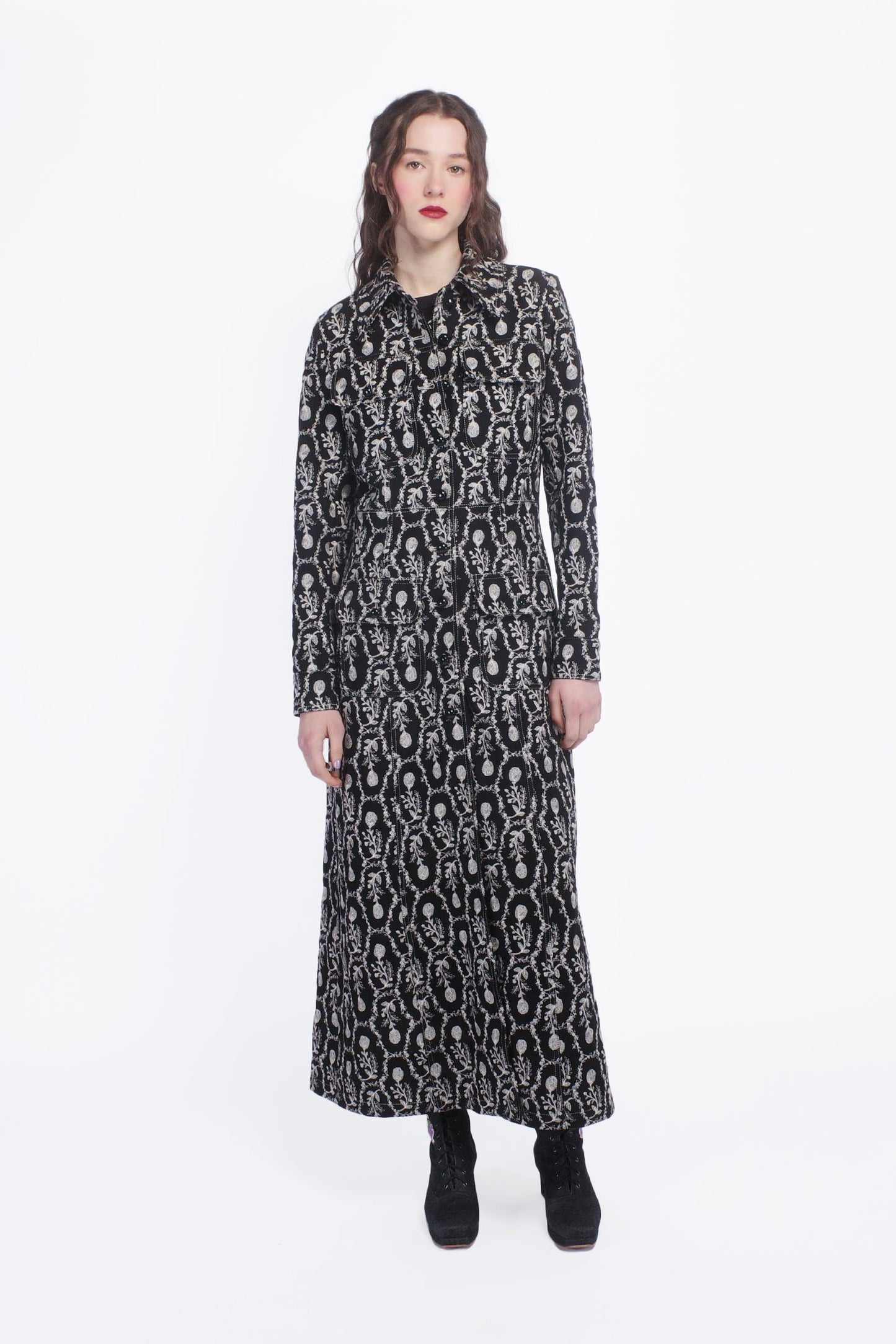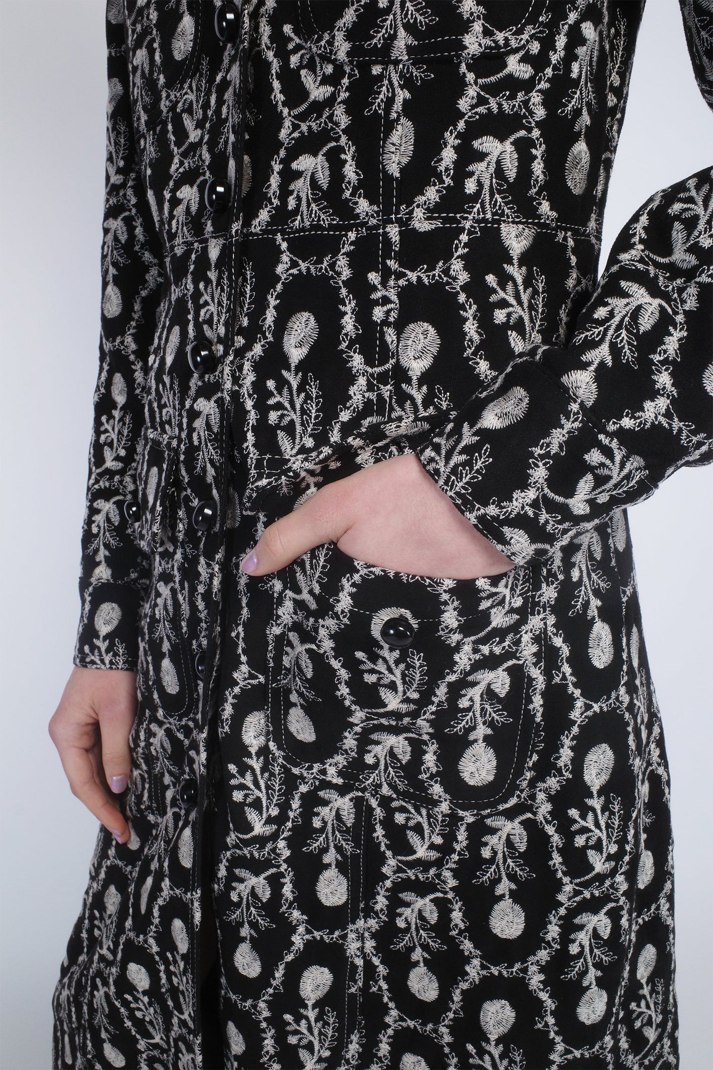 Wrap yourself in elegance with the Sleeping Beauty Embroidered Faux Suede Long Coat. Featuring delicate floral embroidery and a soft, luxurious faux suede fabric, this coat adds a touch of enchantment to any outfit.
