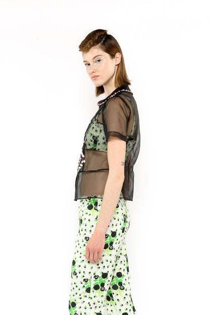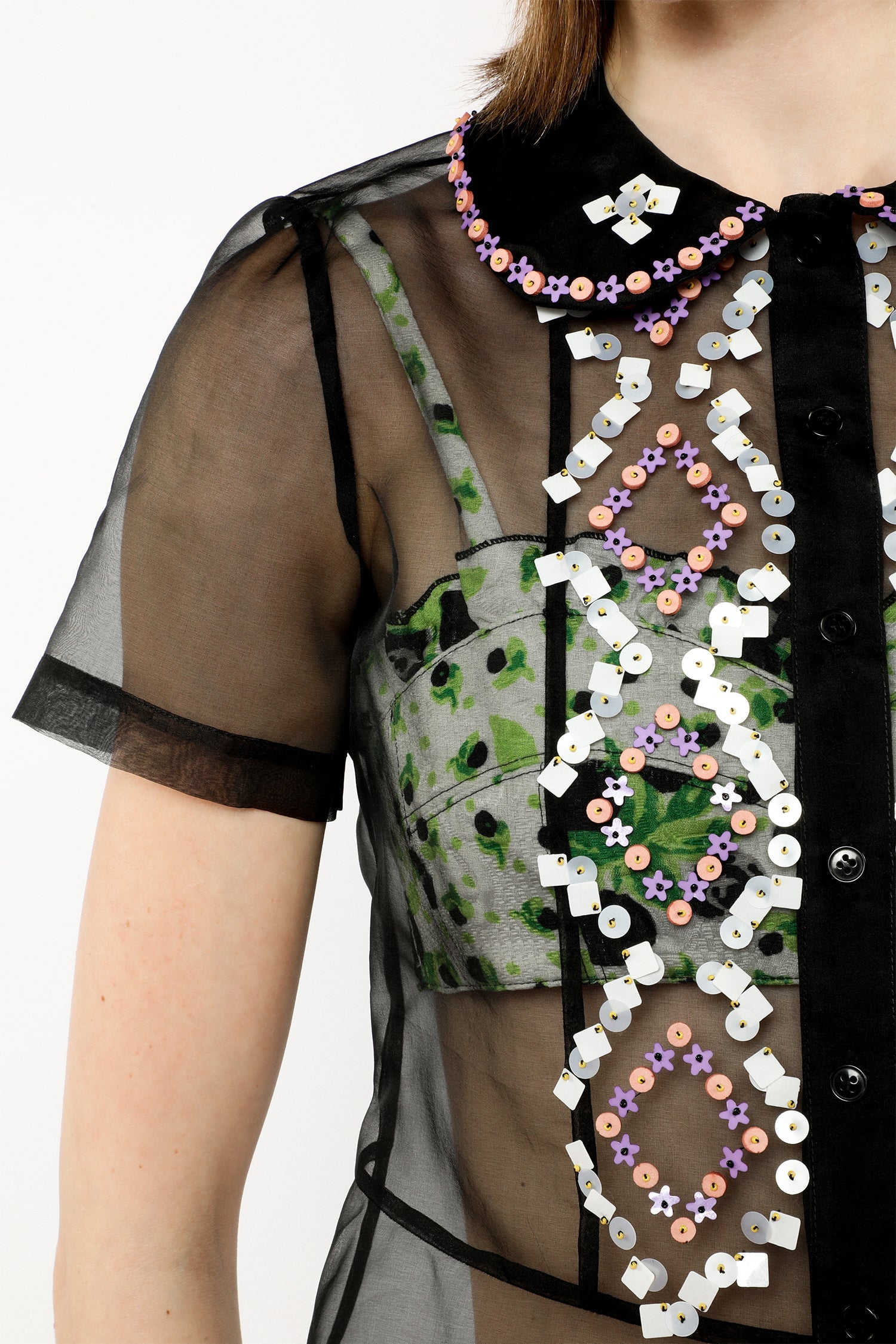 The Twinkle Beaded Organza Blouse is a classic piece with a touch of sparkle! Featuring twinkling hand-embellished sequins and beading with a timeless peter pan collar for an added charm. This Blouse is the perfect piece for any occasion!