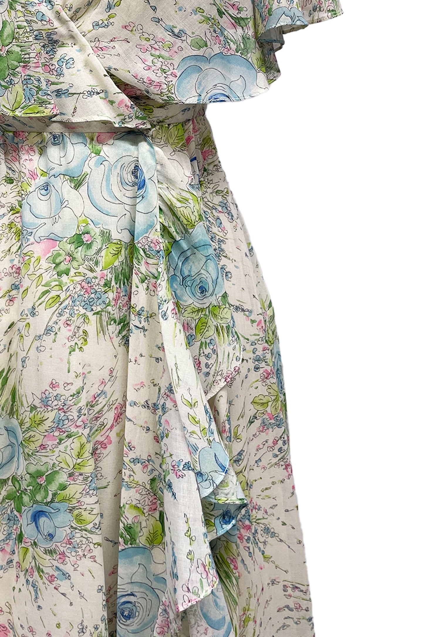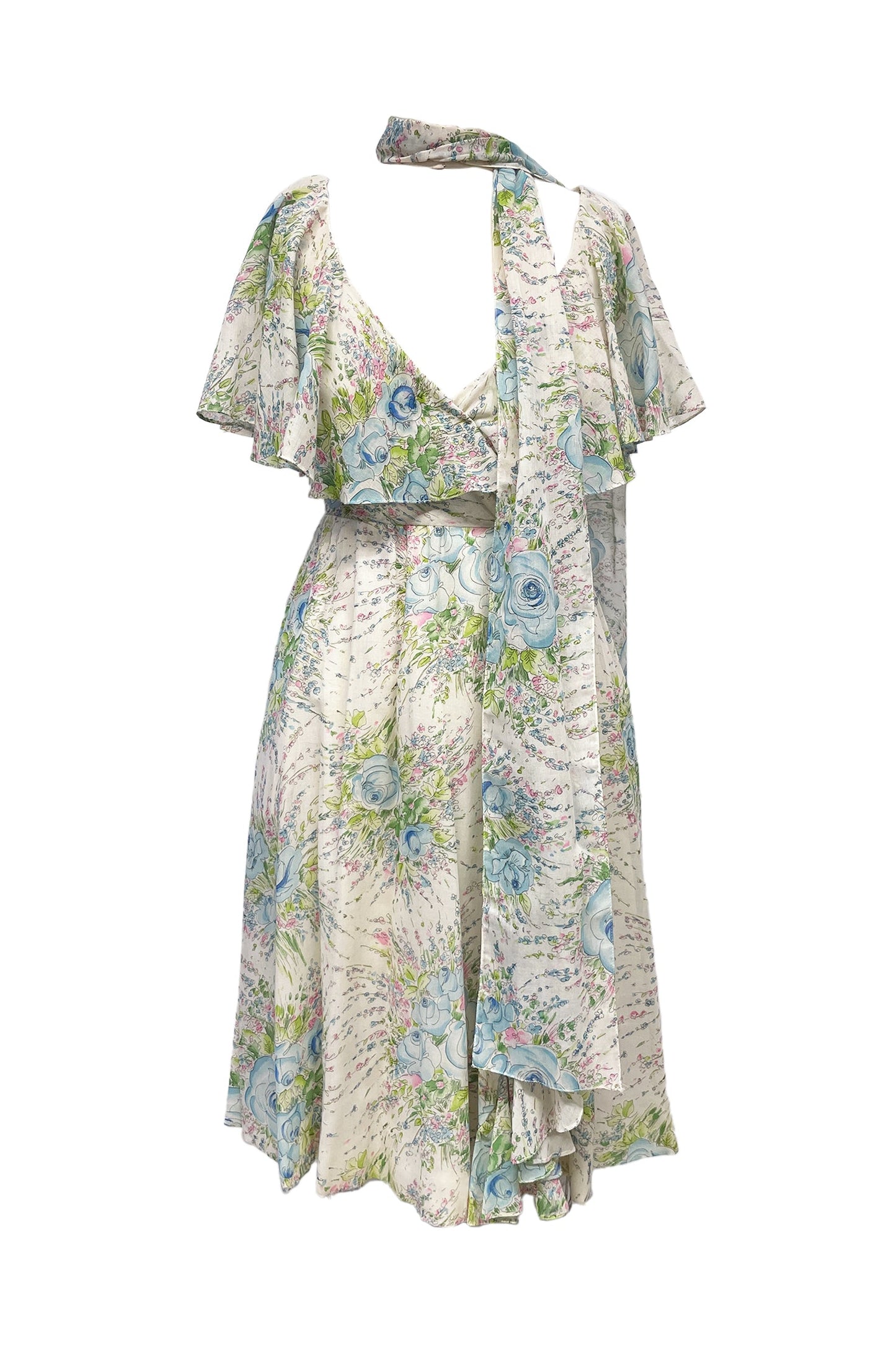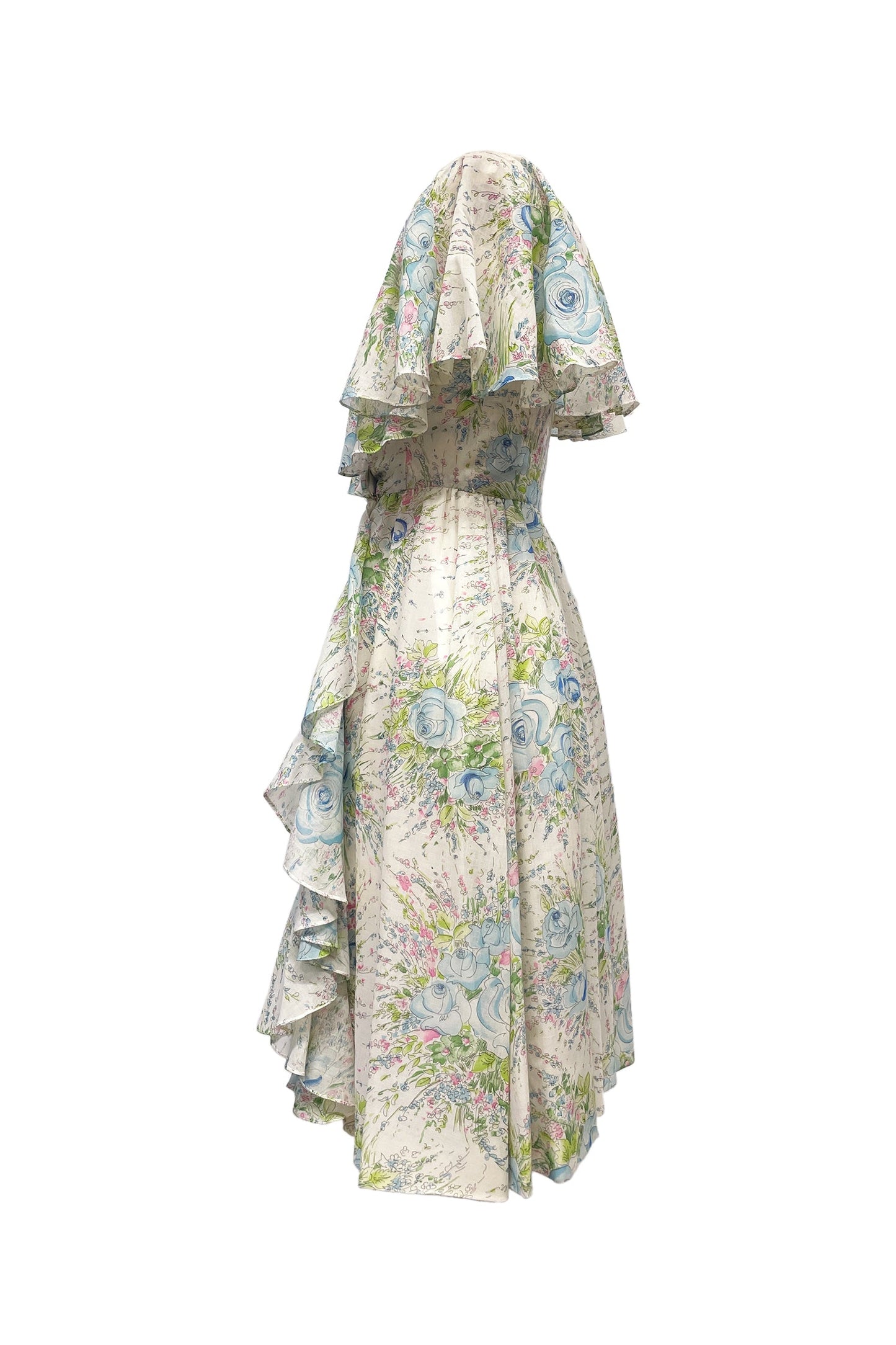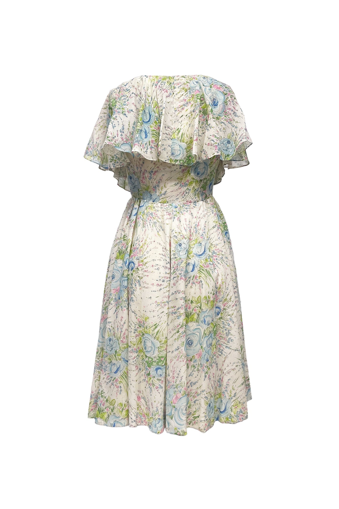 Vintage Oscar de La Renta Floral Short Sleeve Ruffle Dress