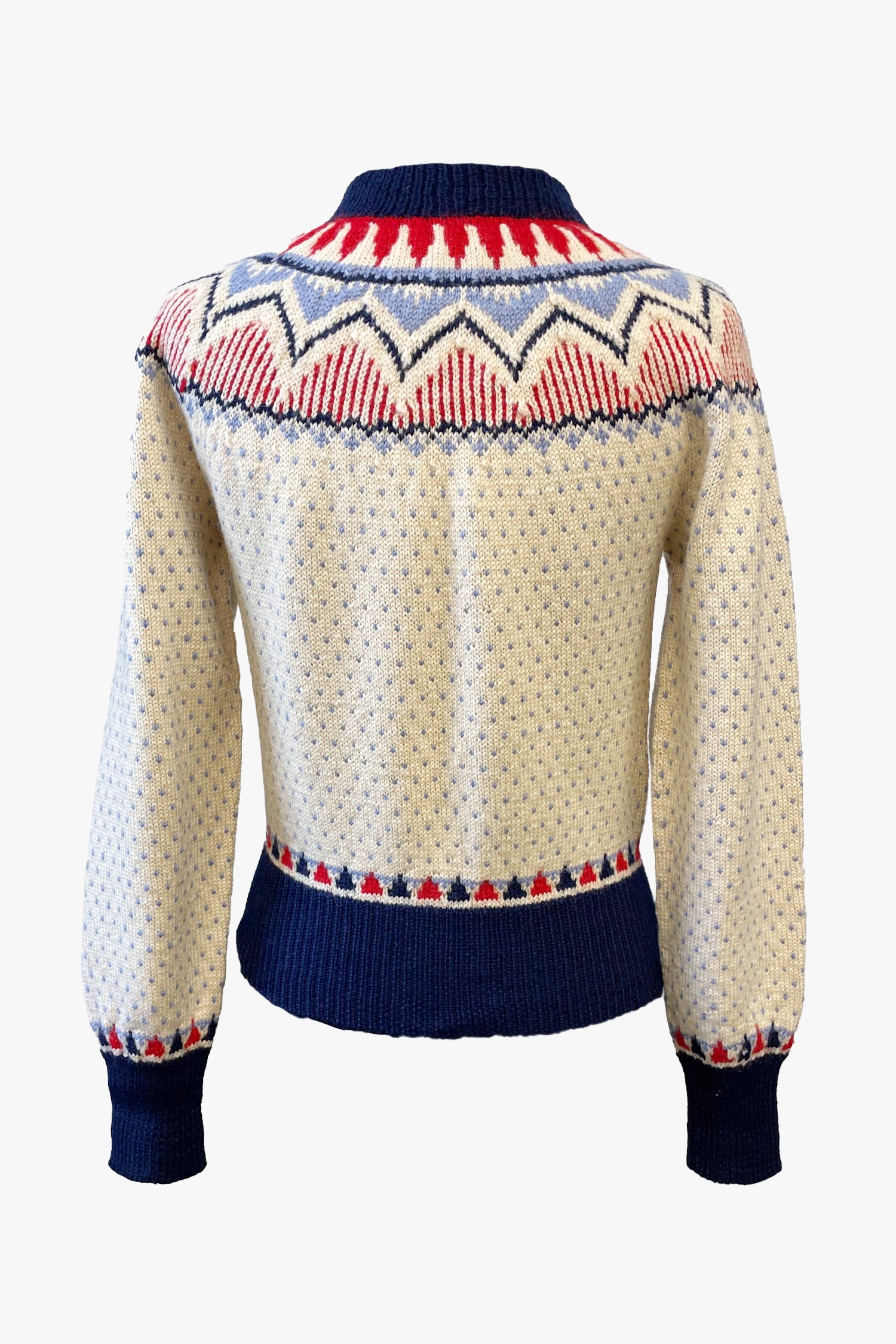 Crafted with care and rich in character, it showcases traditional Fair Isle detailing across the chest and sleeves. A great addition for anyone who appreciates vintage knitwear with personality.