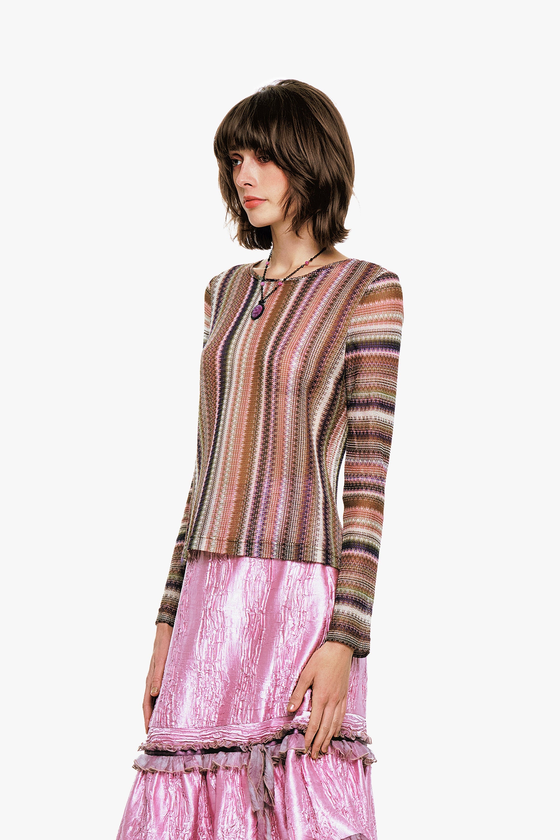 Wavy Chevron Knit Long Sleeve Stripe Top
